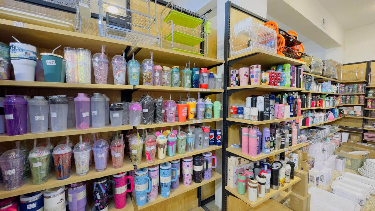 Wire whisk, wooden rolling pin and chrome bowl. 3D render illustration isolated on white background