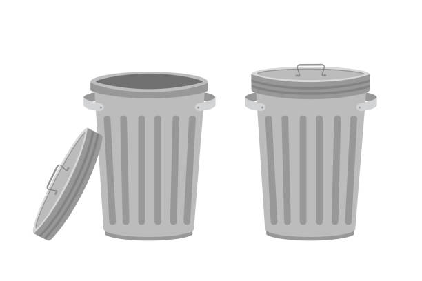 Metal trash can. Garbage cans with open and closed cover. Isolated on white background. Flat vector illustration