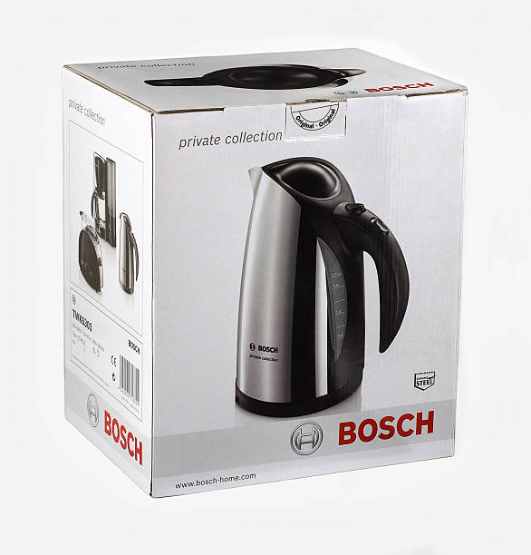 Rishon Le Zion, Israel – November 7, 2014: Cardboard box of Bosch cordless electric kettle. Private Collection. Stainless steel. 1.7L. Model TWK6303. Produced in China.